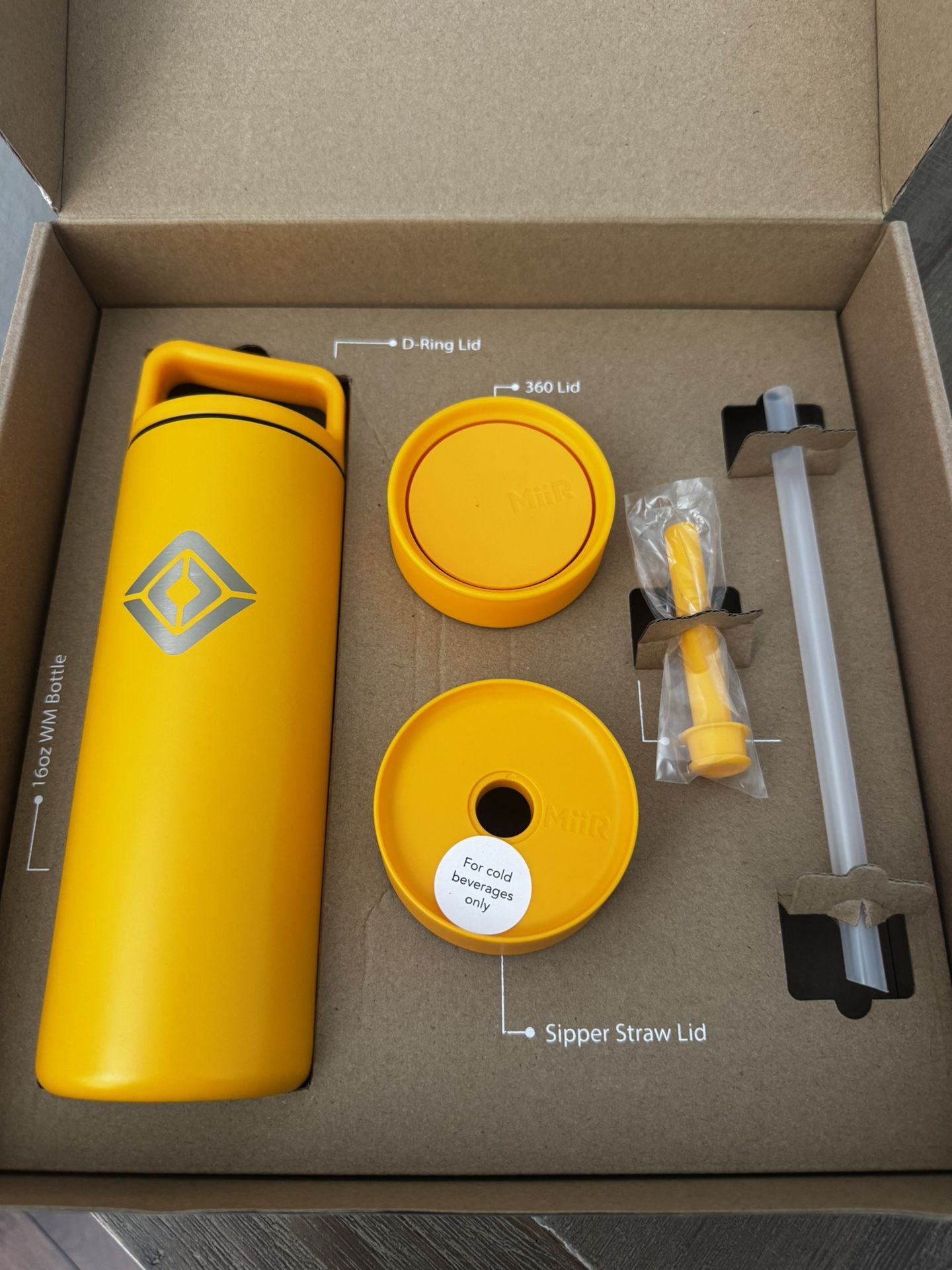 New in box Rivian x MiiR Tumbler set includes 16oz WM bottle, D ring lid, 360 lid, and sipper straw lid.