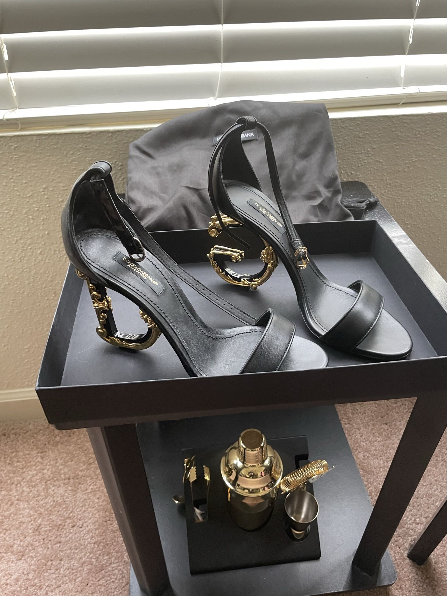 Like new Dolce & Gabbana heels, only worn once. Moving and getting rid of some things. Size 8.5. Missing 1 original strap, but have a black replacement one.