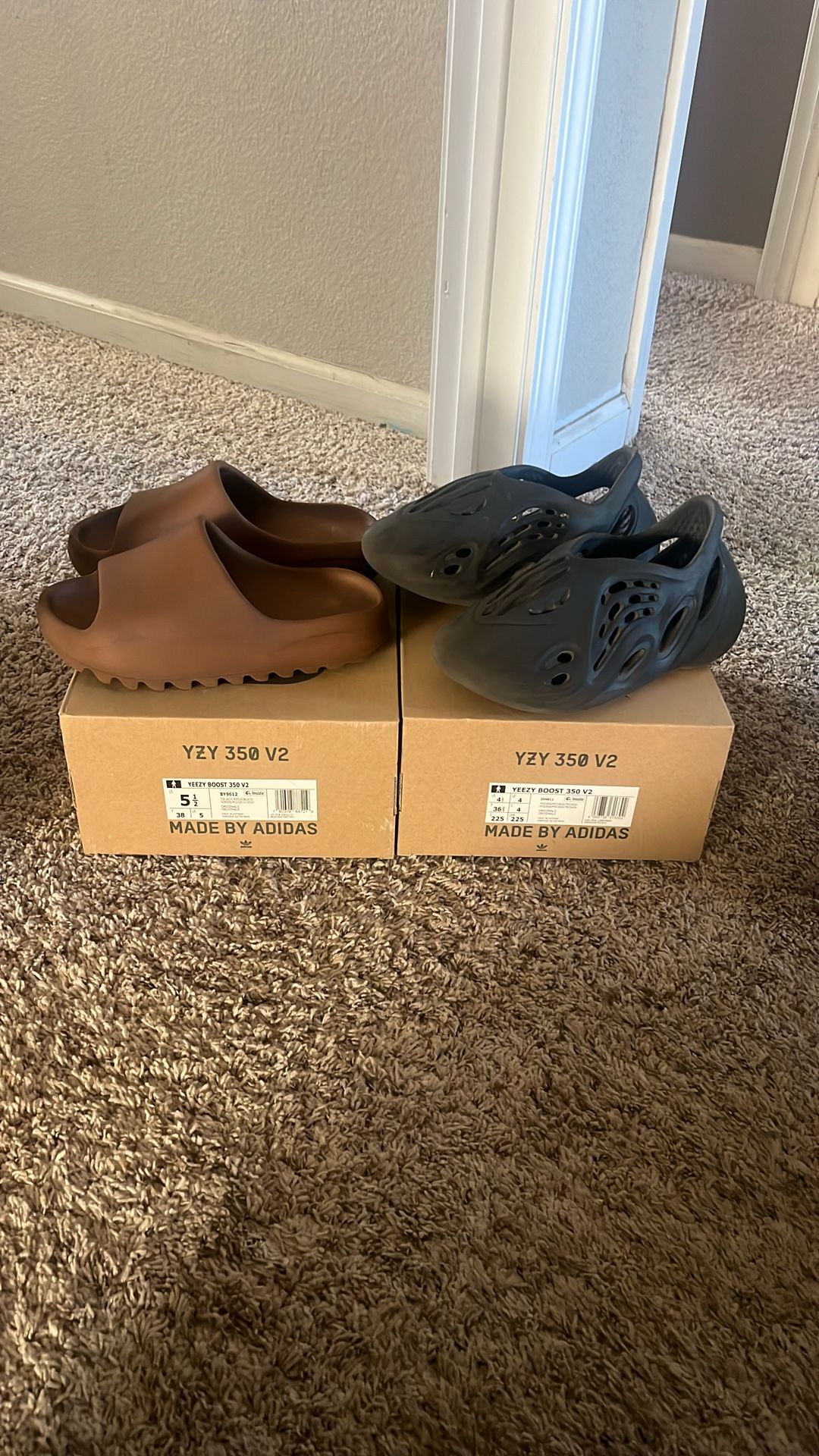 Slides 5 $30 Yeezy shoes 4.5 $35 JA tennis shoes 4 $20 Foam runners 4 $35 All in great condition-used