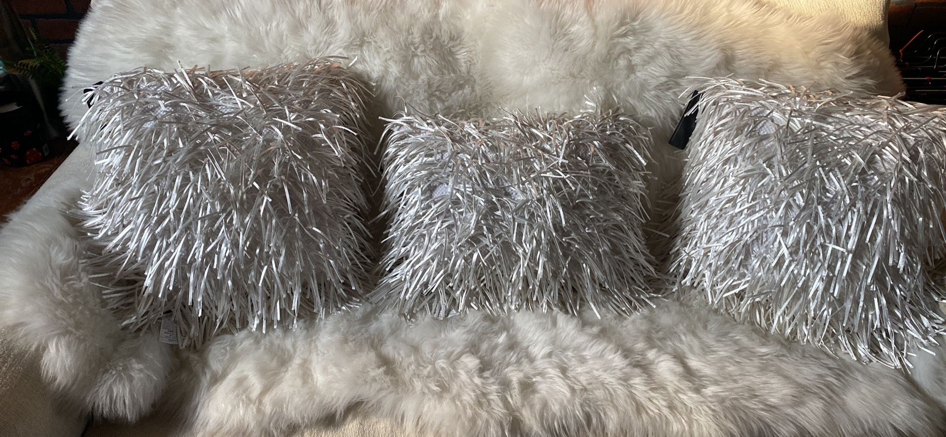New Bebe pillows. Glamorous and bougie. Non smoking home, no pets. Two 16x16 one 16x13. Perfect for holidays, guest bedroom, or chaise. Leather look.
