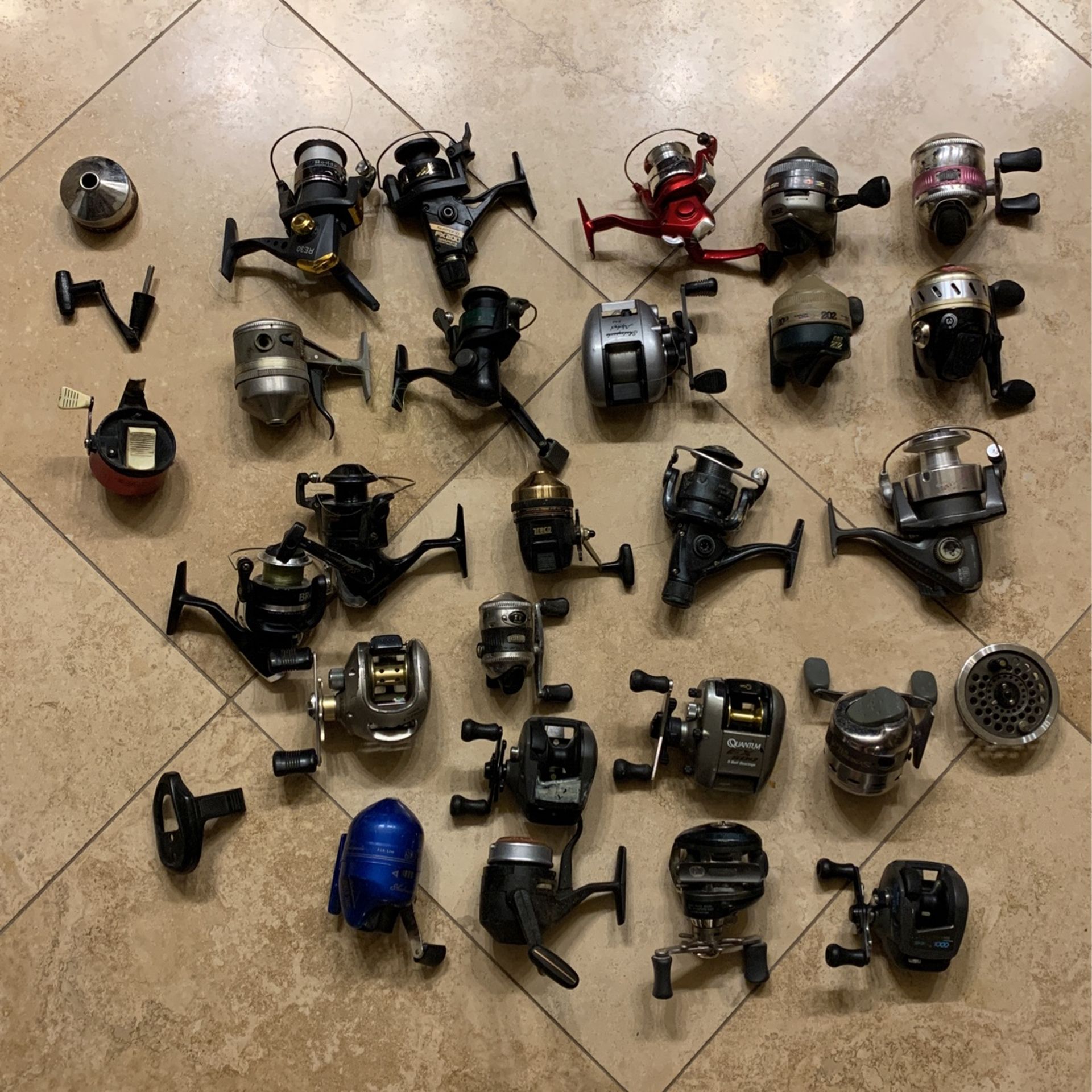 This is a collection of 25+ fishing reels in various condition but mostly fully functional. For resellers or hobbyist or collectors. Anglers get your big one! $4 x 25 at $100. My excess stock. $99 obo - Local pickup or I can ship to you. No delivery! Location Ahwatukee foothills See my other posts for unique and retro items. Games, audio, audiophile, nes, snes, fishing.