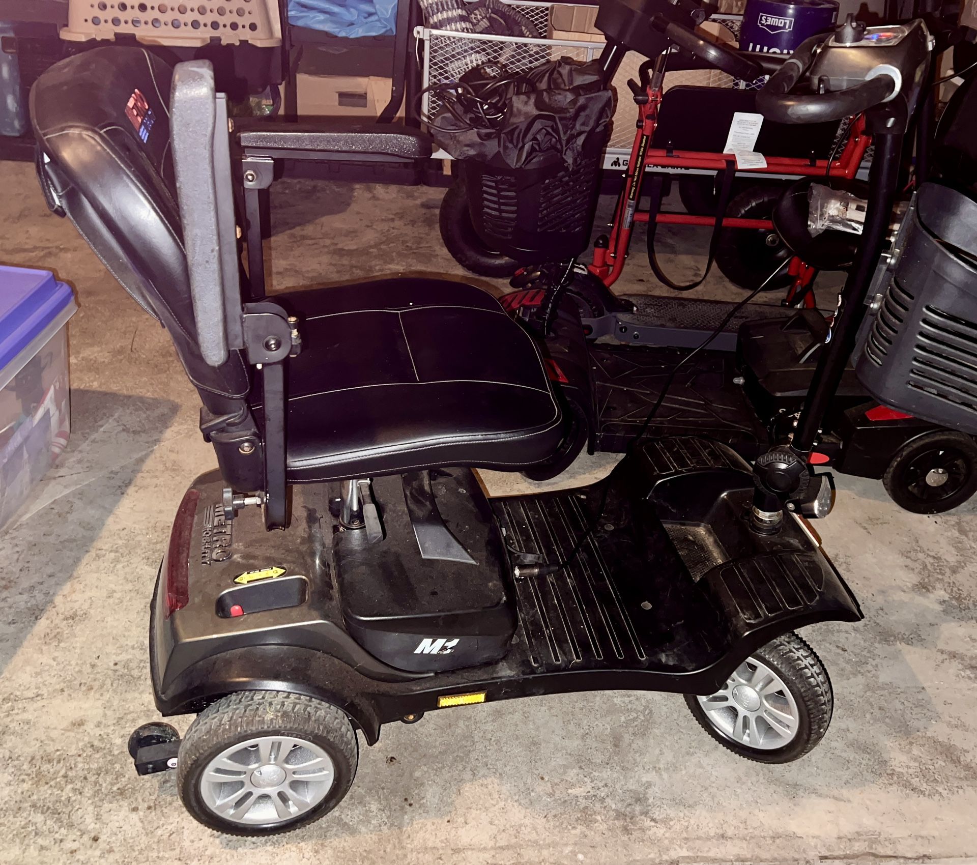 Vey nice power scooter. I have had this in the garage, always covered and cleaned. Like new. And used for maybe 1 mile. Batteries are perfect. It is in perfect conduction! It is dusty. Purchased as a toy for when I travel and never had to use it. $600 obo. Keep in mind, it’s barely used and basically dusty & brand new.