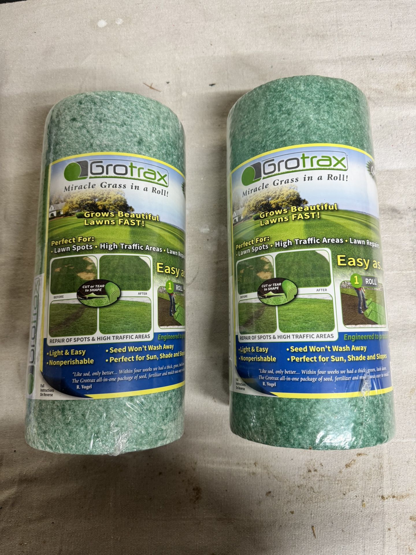 Grotrax lawn seed. Two 50sf rolls of lawn seed.