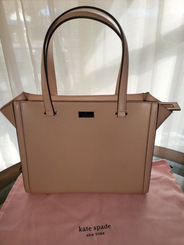 Kate Spade "Vita" Regatta Court handbag in color Warm Vellum (Pink/Blush). New with tags, includes dust cover. Approximate measurements: 10.6" H x 13.4" W x 5.9" D, drop length: 8". If the post is up it's still available.