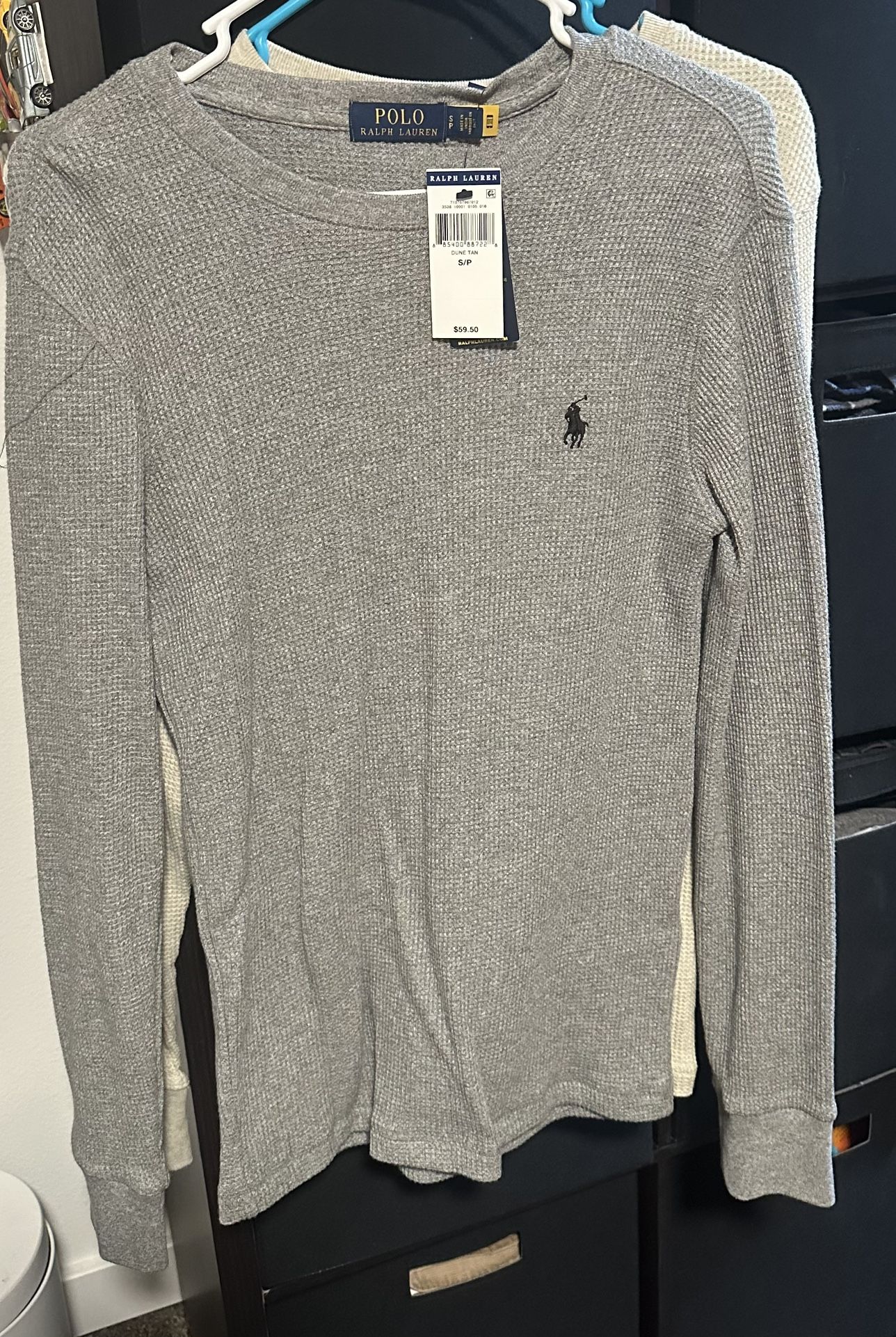 Polo long sleep slim fit Grey and tan color both 60 each in retail from polo is do $70 for both or best offer