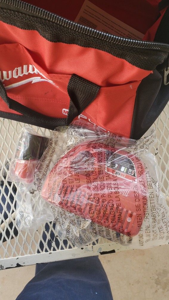 New milwaukee M12 charger, Battery and contractors bag (no tools) $60 or Best offer.