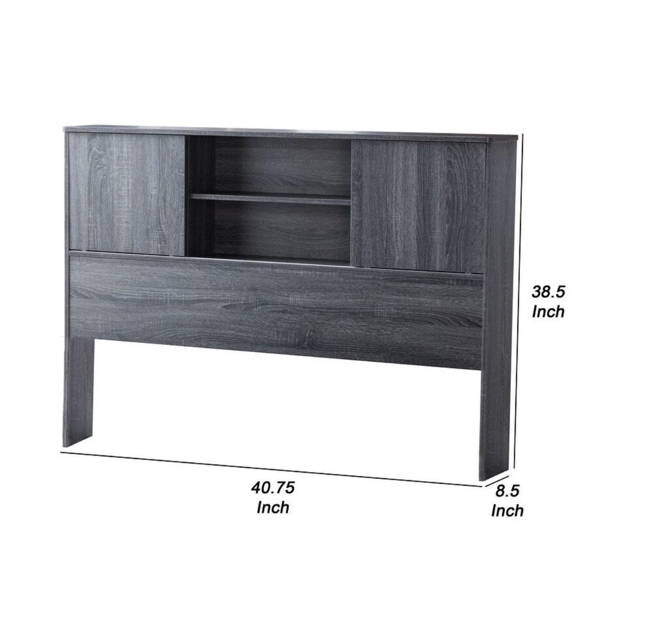 ID Furniture Twin Bookcase Headboard with 2 Sliding Doors - Distressed Gray