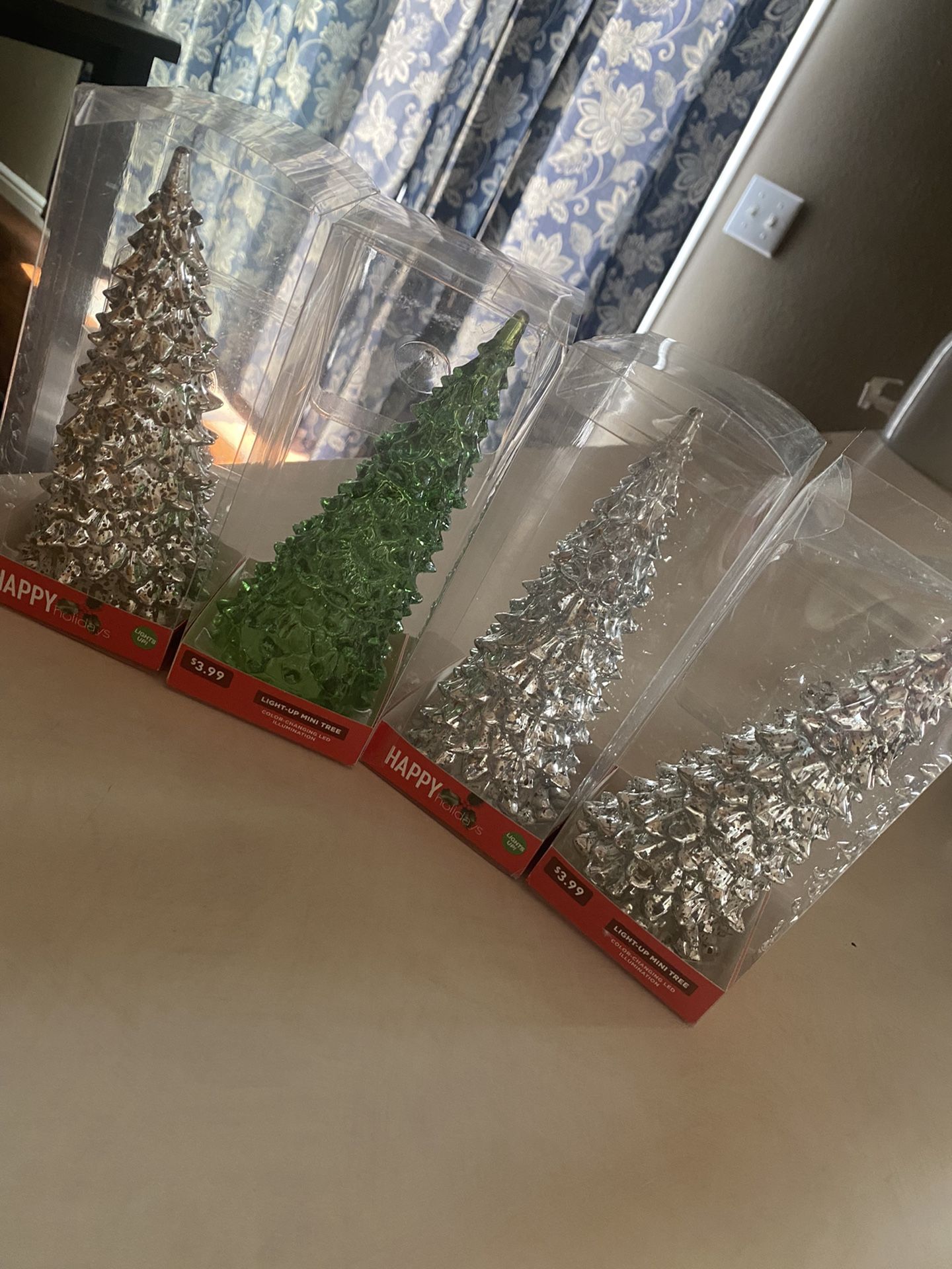 Light up Christmas trees for decor brand new still in original package $3 a piece or $10 for all