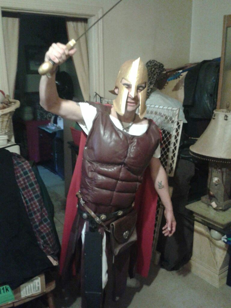 Hand made by me this costume is not just a unique costume but is a one of a kind work of art. Comes with sword , belt and satchel