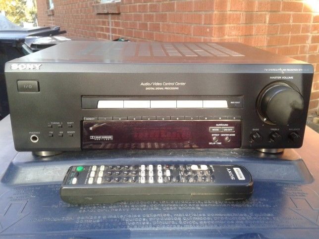Sony STR-V220 - 5ch / 300 Watts Home Theater Surround Receiver Onkyo SKW-770 powered subwoofer SKC-770 center speaker SKF-770 front right and front left speakers Optimus rear speakers All in very good condition