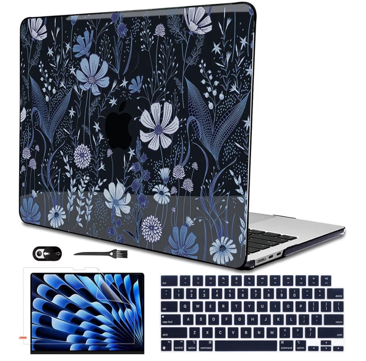 LCMOCICO Compatible with 2022 2023 2024 MacBook Air 13.6 inch Case A3113 M3 A2681 M2, Crystal Printed Pattern Plastic Hard Case Cover for MacBook 13.6 inch Air 2024 M3 Touch ID, Wild Flowers Black