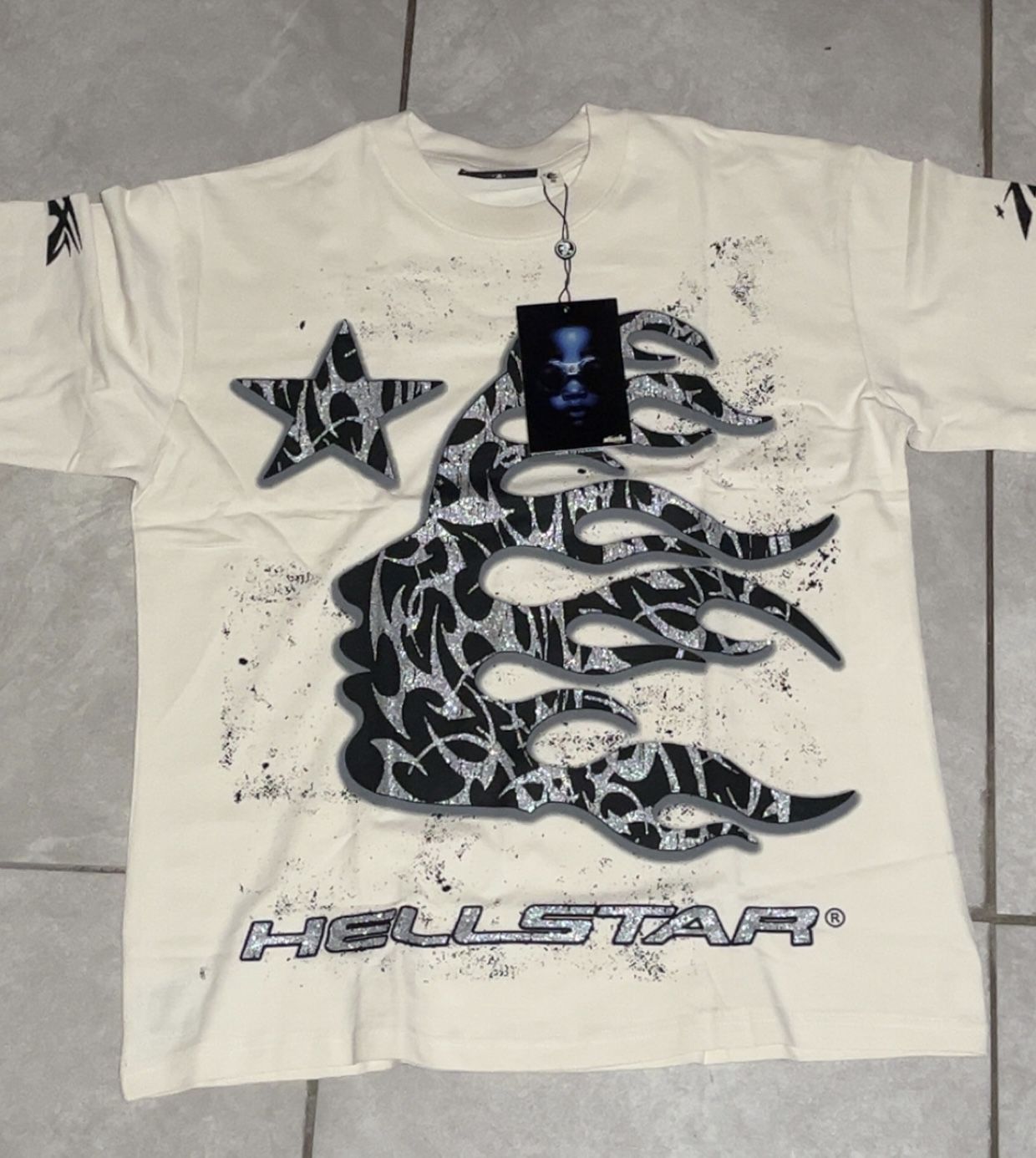 White HELLSTAR T SHIRT BRAND BEW BEST QUALITY seller on this app. SUMMER is coming up☀️😎 Check my profile for more clothes SIZE SMALL fits like a medium Anwering all questions FAST RESPONDER💨💨.