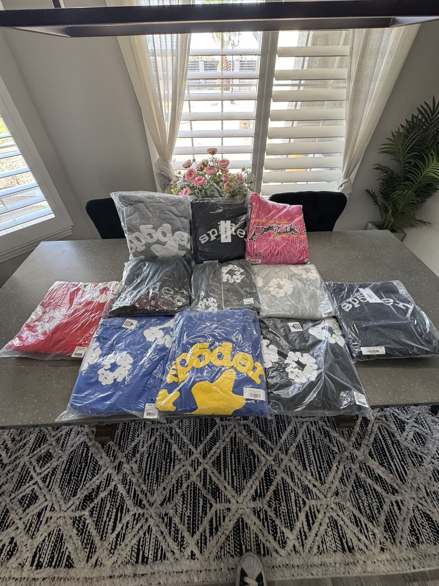 I have to offer many different styles of denim tear/ spider/ essential hoodies and jogger. Check out my profile for deals to get fly Same or next day shipping‼️ Best quality on here!