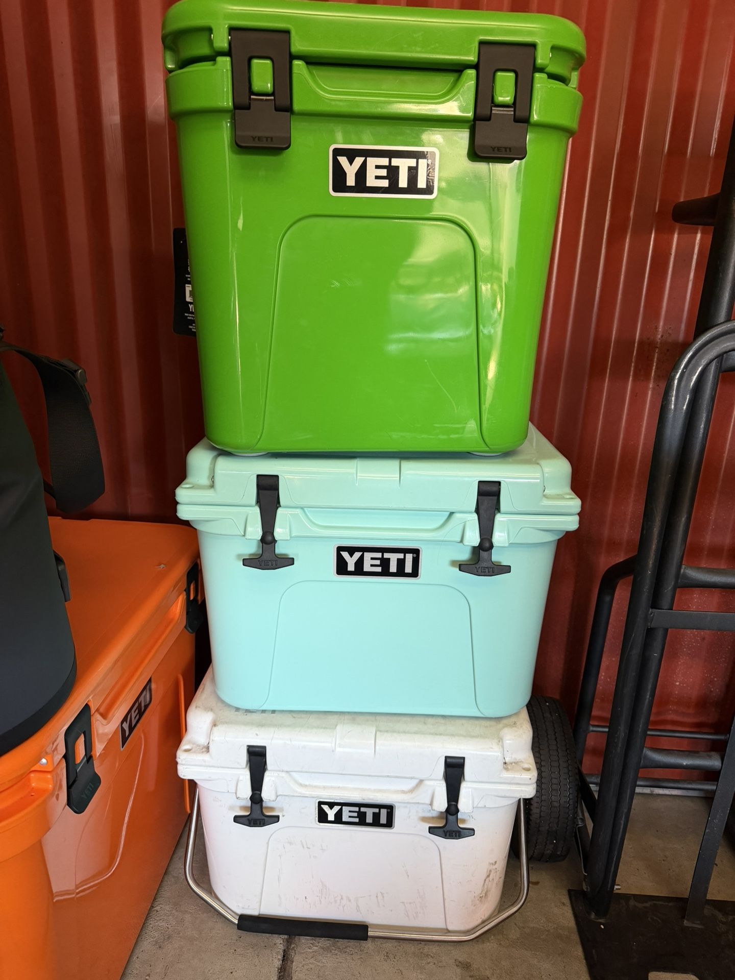 NEW Yeti Roadie 24 canopy green $220 USED Yeti Roadie 20 seafoam $180 USED Yeti Roadie 20 white $140 Prices are slightly negotiable. Cash only. No trades. Must be able to pick up in Alsip. Near 117th and Pulaski.