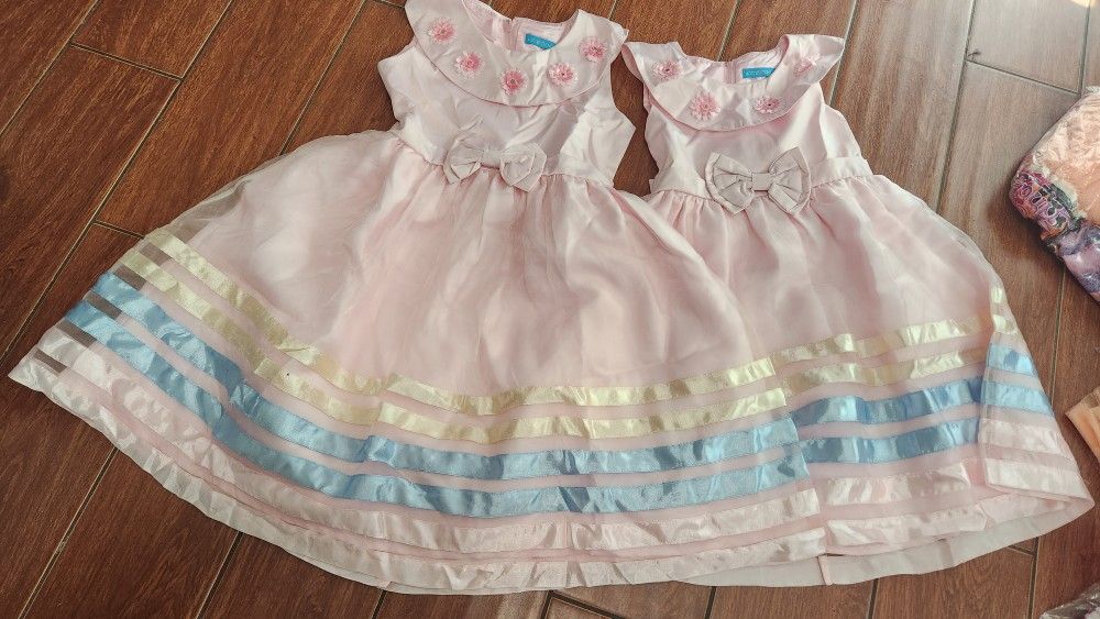 2 Pink Dresses Girl Twin Easter Sz 6 & 8