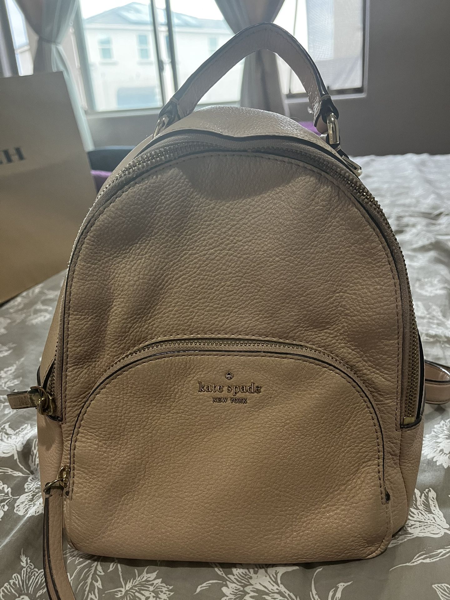 Good used condition. It’s a soft leather. It has a small hole next to the zipper but it still closes fine. It does need a good cleaning but NO Stains. Pickup only