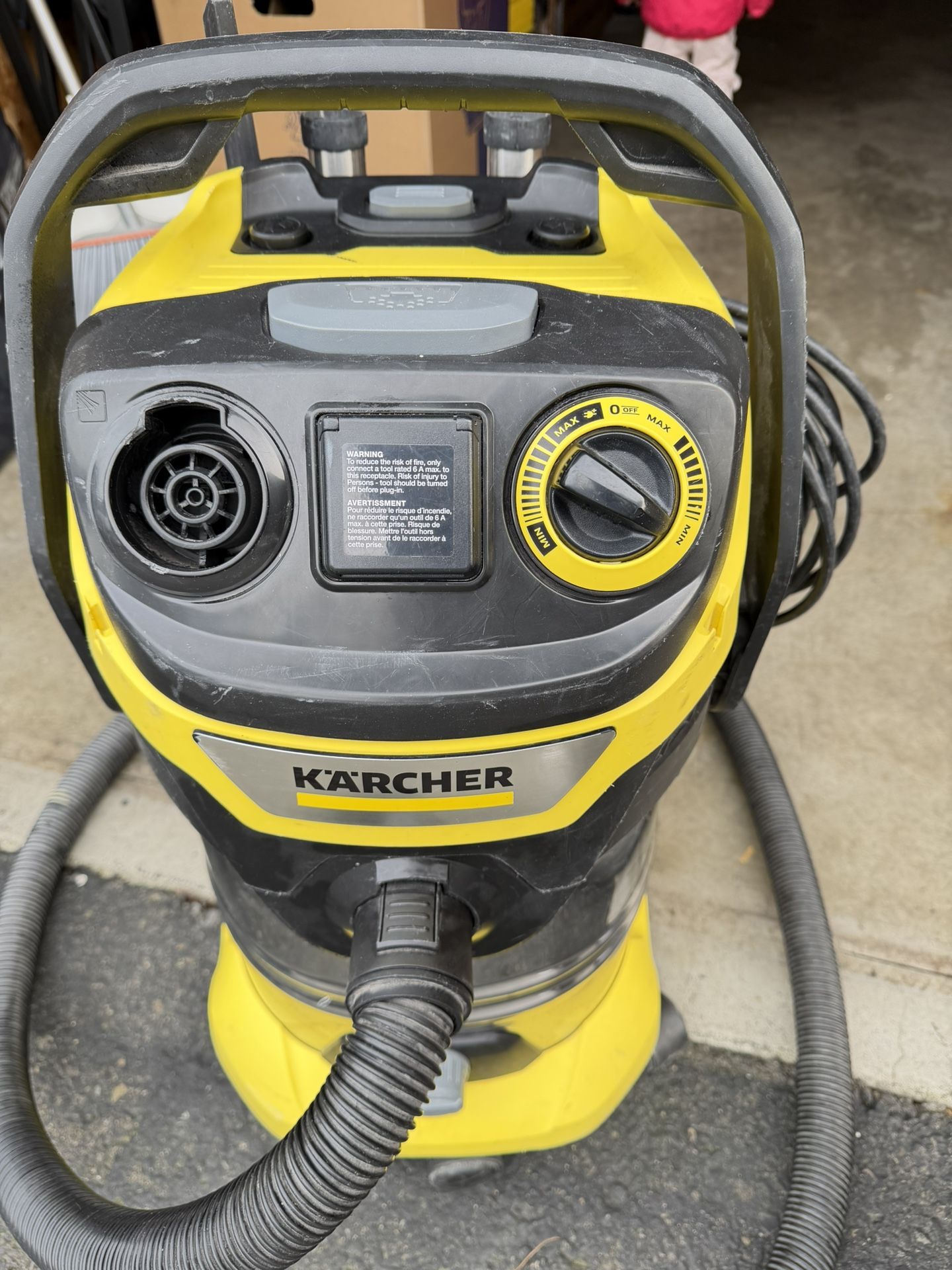 Selling a Kärcher WD 6 P S Multi-Purpose Wet-Dry Vacuum in excellent condition. Perfect for DIY projects, workshops, and home cleaning. • Capacity: 8 Gal • Power: 1800 Watt • Features: Wet & dry cleaning, blower function, space-saving design • Includes: Attachments for floors and crevices • Condition: Gently used, works perfectly