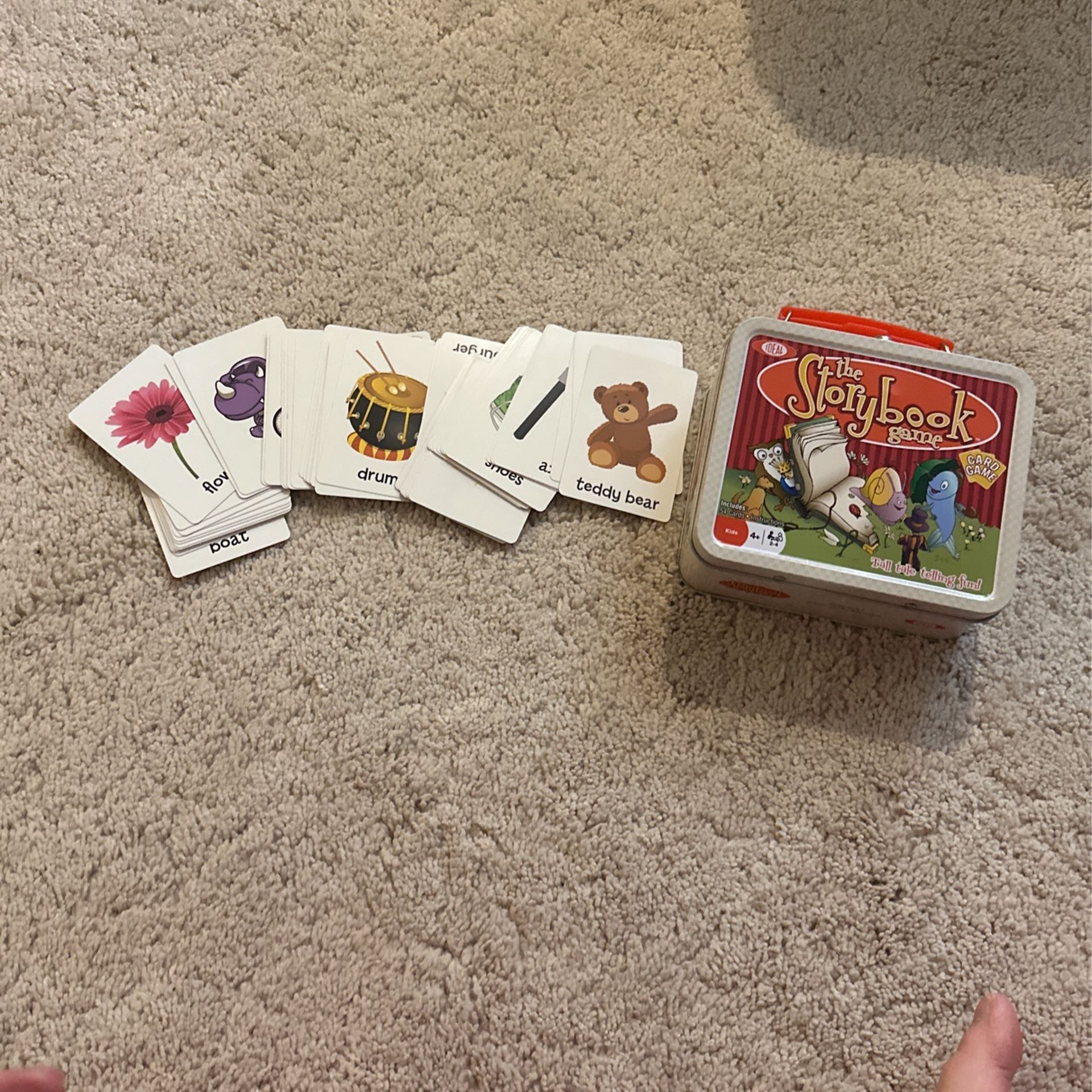 Tell the story fun together 54 cards and instructions and come with a tin box. Easy to take it with traveling. Very good condition. Only play a couple times. For kids age 4+ 2-4 players pet-free and smoke- free
