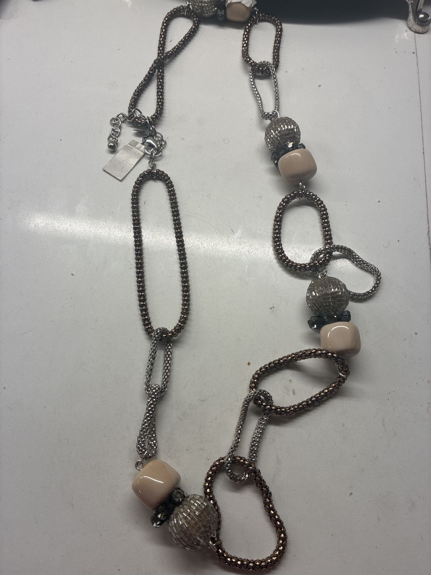 Chico’s Long Statement Necklace Mixed Metal & Bead Links