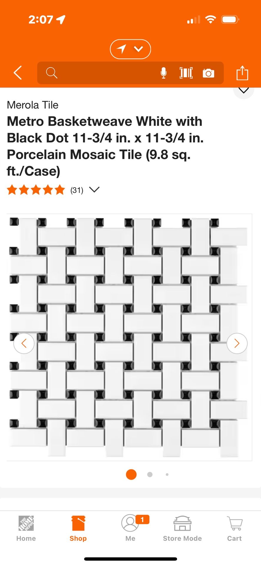 Porcelain Mosaic Tile 9.8 Square Ft / Case