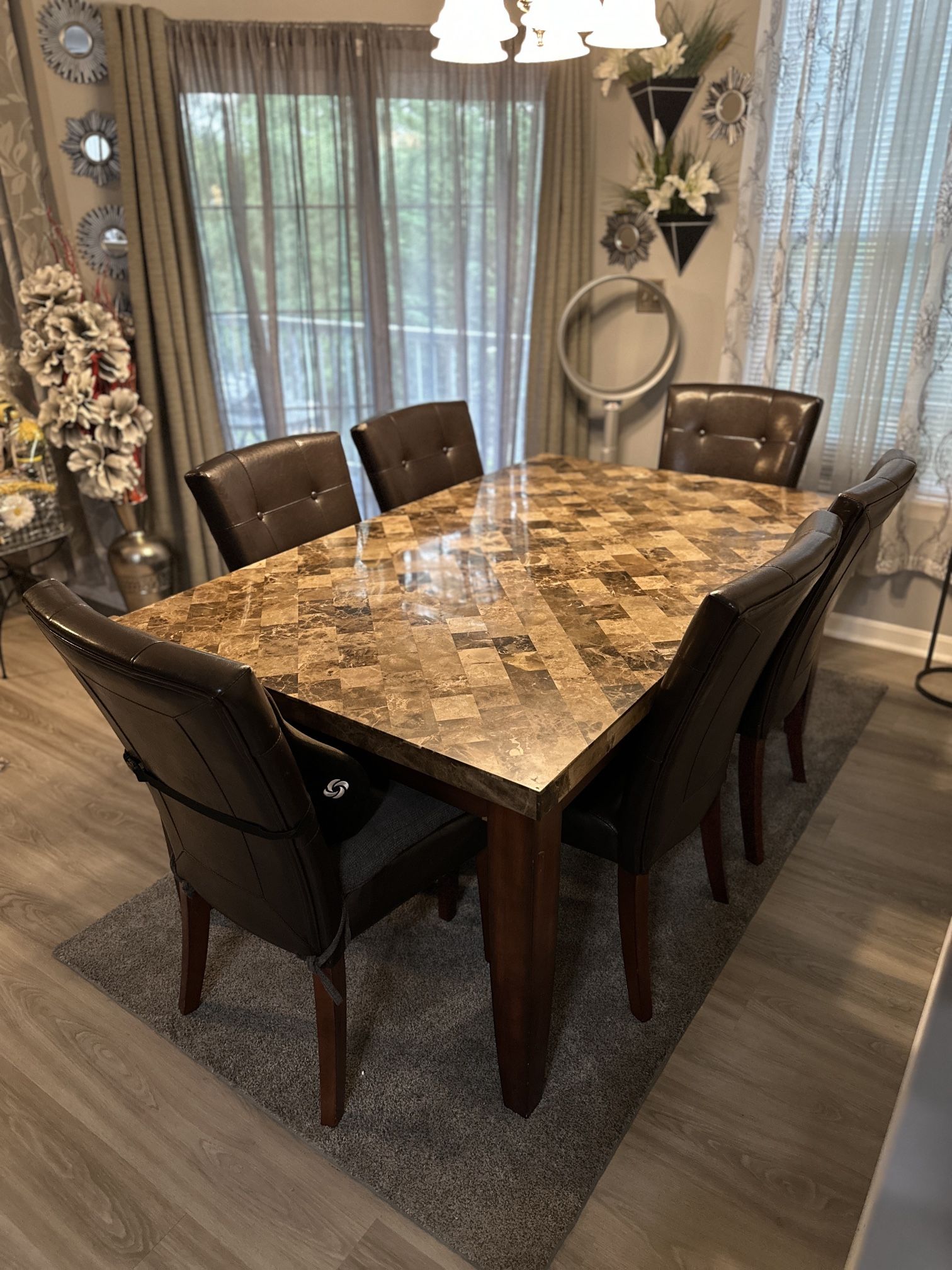 *NO LOW BALL OFFERS* **Heavy Duty** (Bring Enough People To Carry) -The Table Is In Wonderful Shape (REAL MARBLE) -The Chairs Leather Has Bit of Pealing But Can Be Reupholstered If Desired -Spent $1,200 originally. Asking for $450 OBO