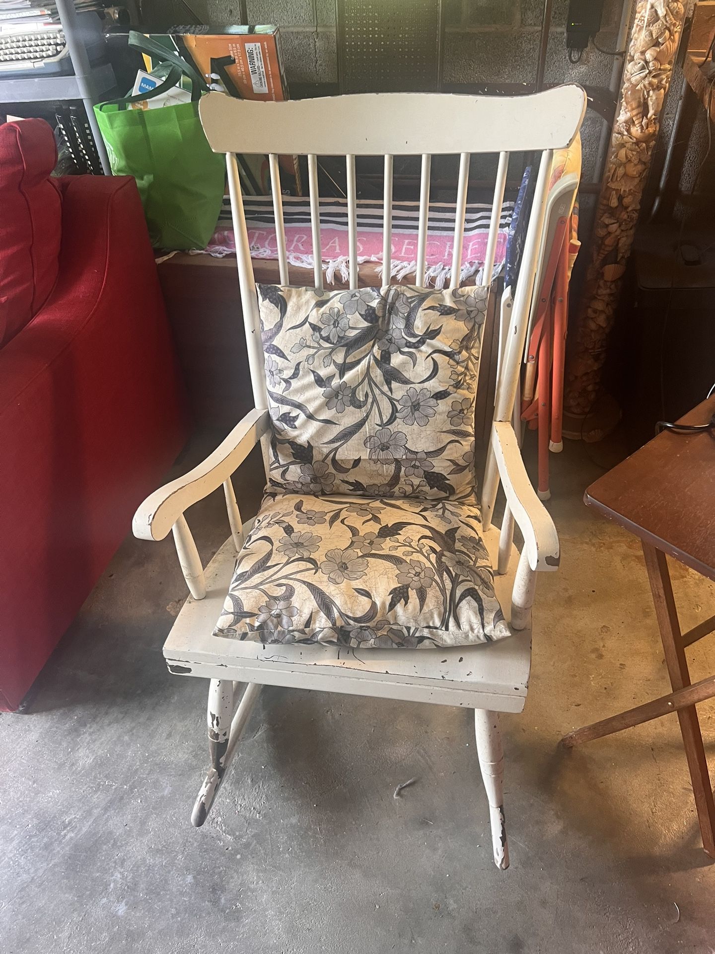 I am moving and can’t take all of this stuff with me! This is a wonderful, solid wood white rocking chair. It will come with the two pillows in case you want them. It could be repainted to look new or left as is to look a little vintage. $20…..Located in Great Neck or can meet.