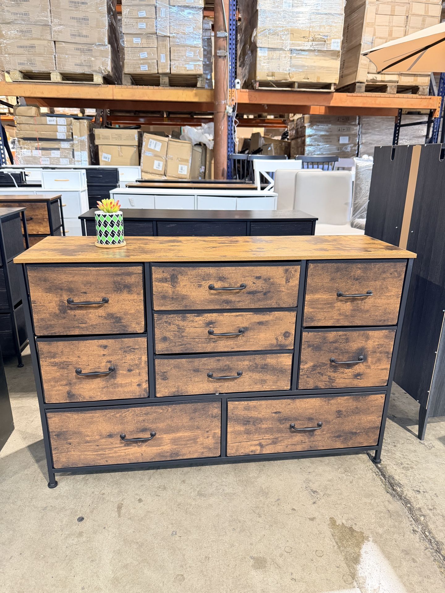 45” Long Dresser for Bedroom, TV Stand with Storage, 9 Drawer Fabric Dresser for Organization, Entertainment Center &Chest of Drawers for Bedroom, Living Room, Hallway, Wood Top, Rusitc Brown