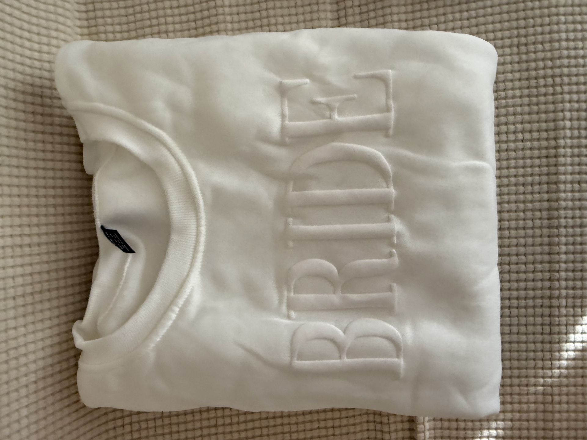 White Bride sweatshirt XL White silk pj set, short sleeves and shorts XL