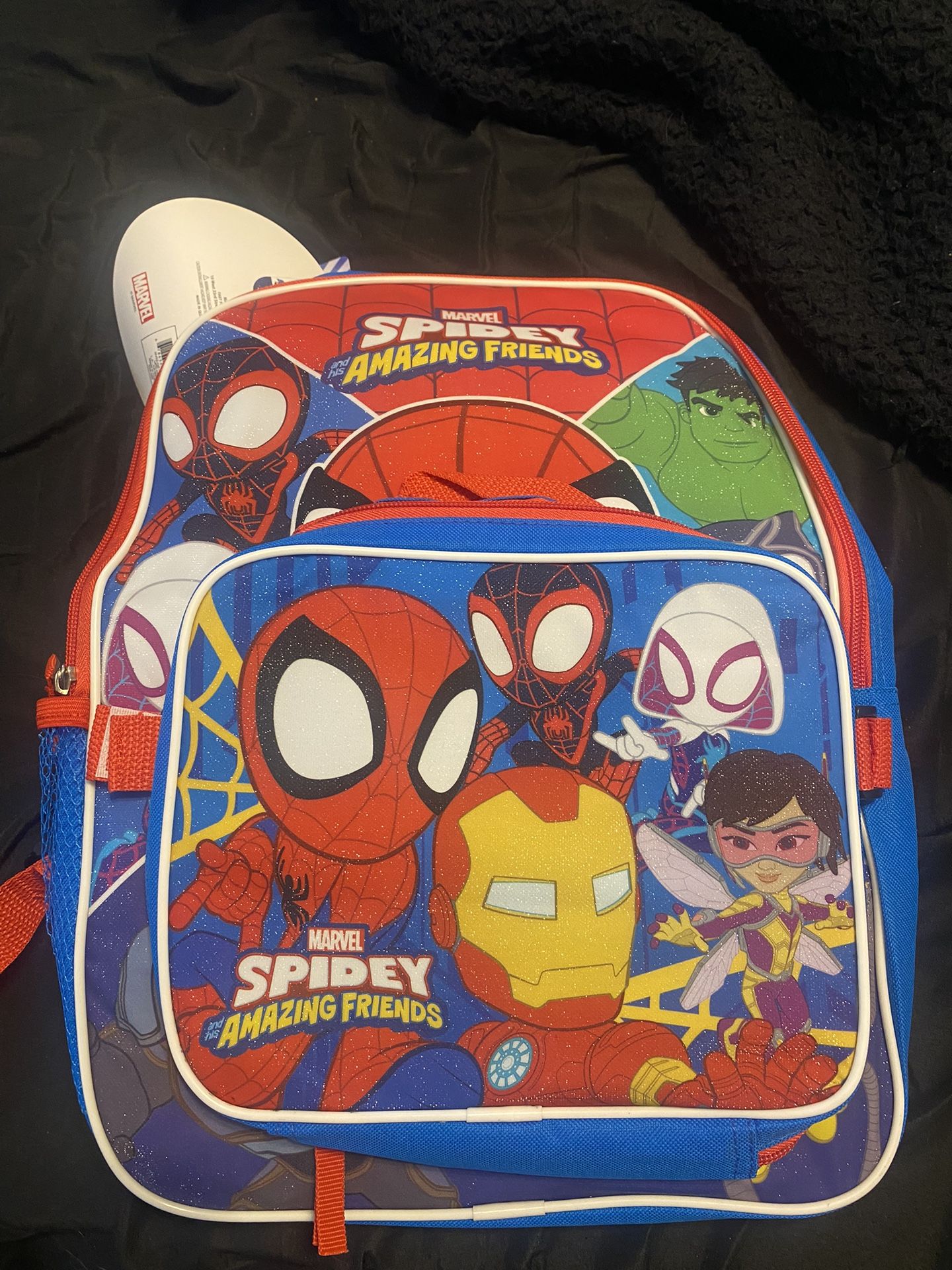 Selling brand new kids spidey and friends backpack with combo. Still has tags.