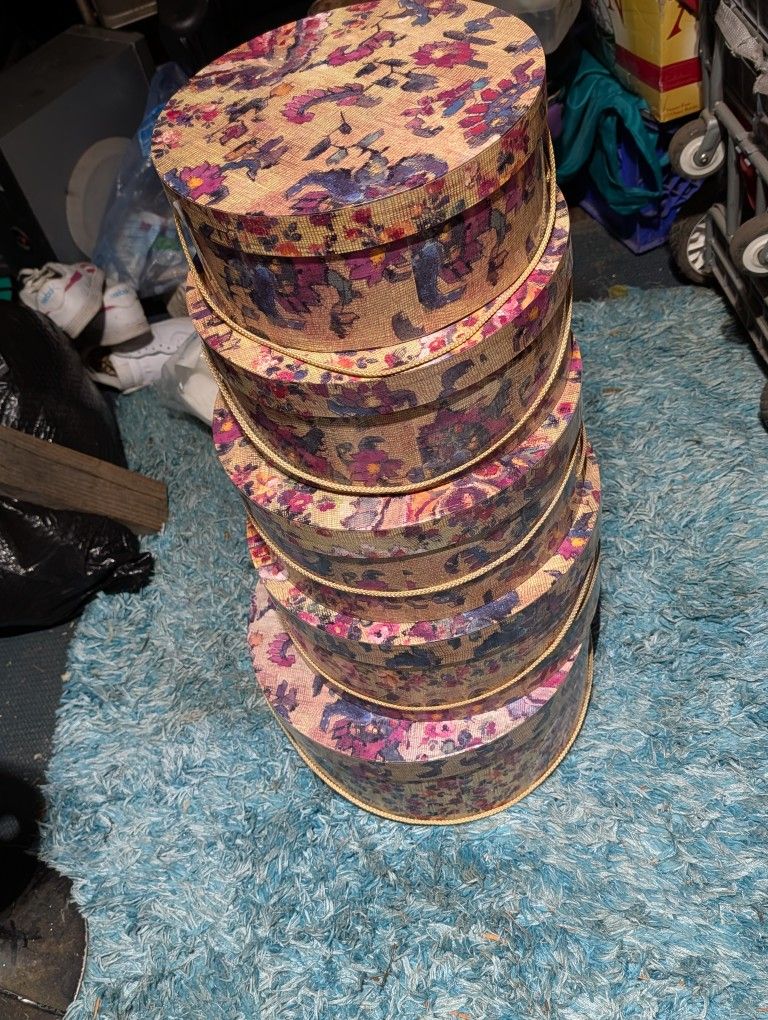 Set of 5 hat boxes. Sizes of boxes: 14.5" 14" 13.5" 13" Brand Tri CoastalDesign