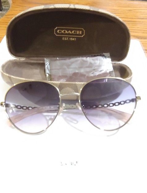 COACH HC7114 Frame shape: aviator Frame color: silver Gender: Women Lens color: grey pink mirror gradient mirrored Plastic lenses with 100% UV protection Lens: 56mm wide Bridge: 18mm wide Arms: 140mm long Our products are 100% authentic Frame Material: Metal