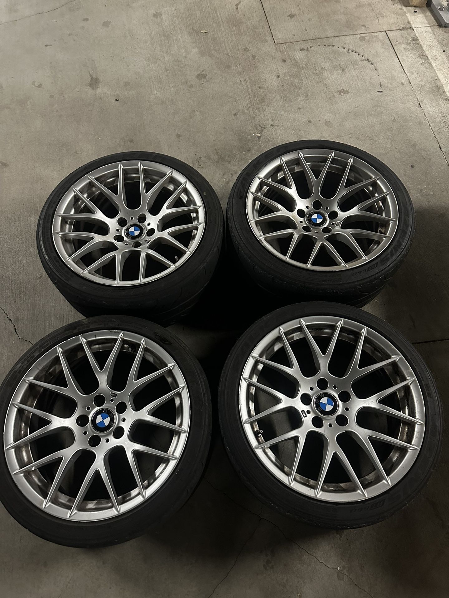 Oem bmw Comp wheels need a refinish been in storage for 3 years great wheels for a project no bends or cracks some scuffs here and there Tires do need replacing 1200 obo