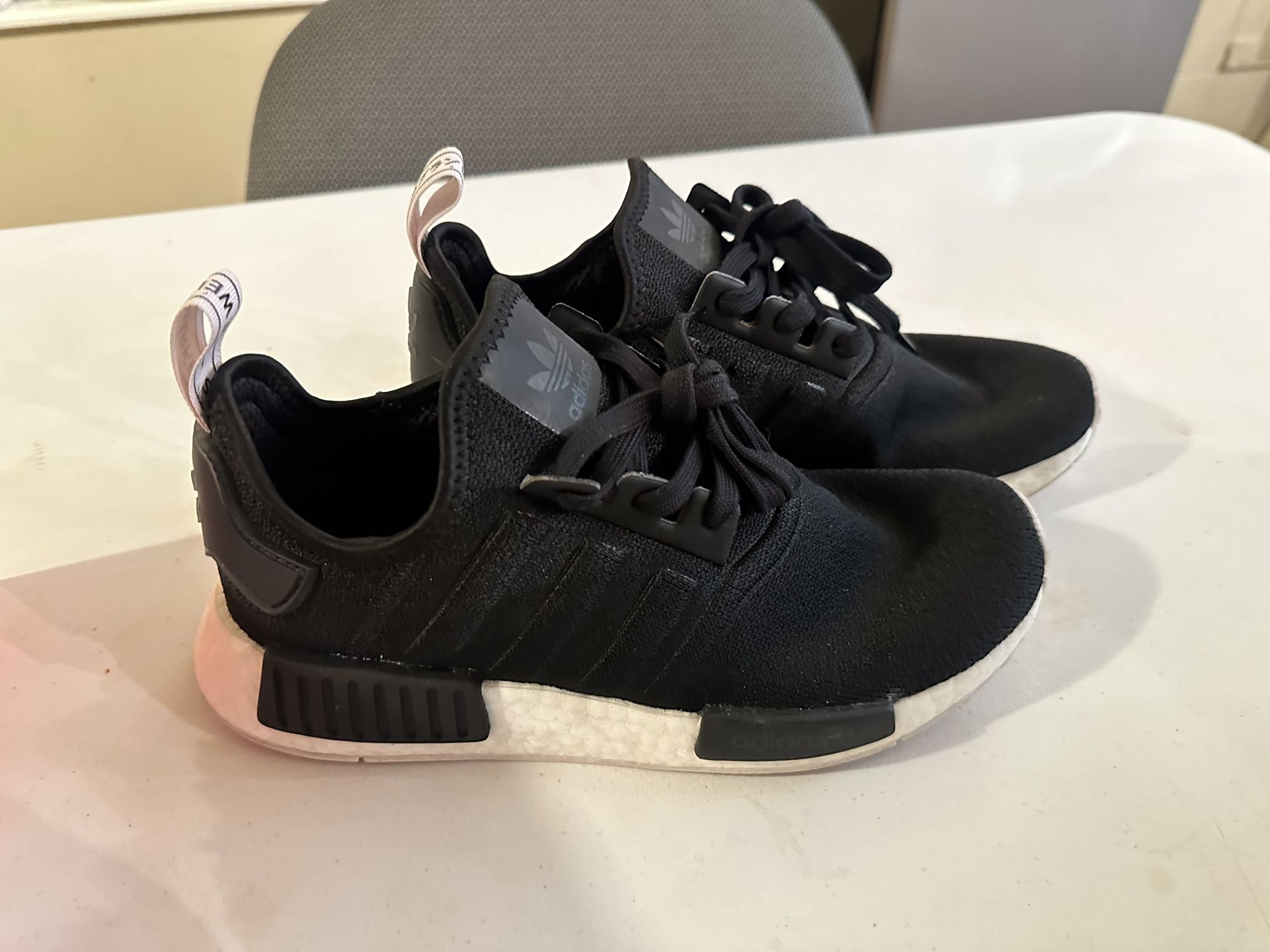 Women’s Adidas NMD Only worn a couple time Still in brand new like condition Color- Black, white and lilac