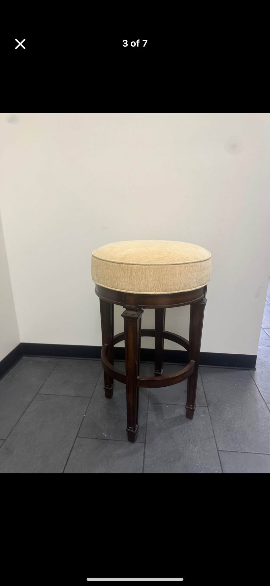 Bar stools - 120$ each 4 Wooden Bar Stool with Fabric Seat Like New : Great Condition No Damages ! Dimension Height 31” Length 19”