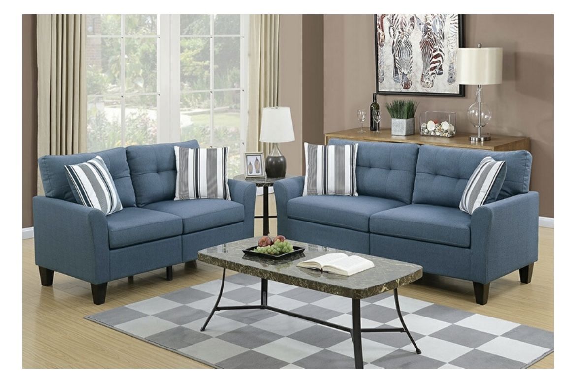 Blue Sofa And Love Seat Set (Free Delivery)