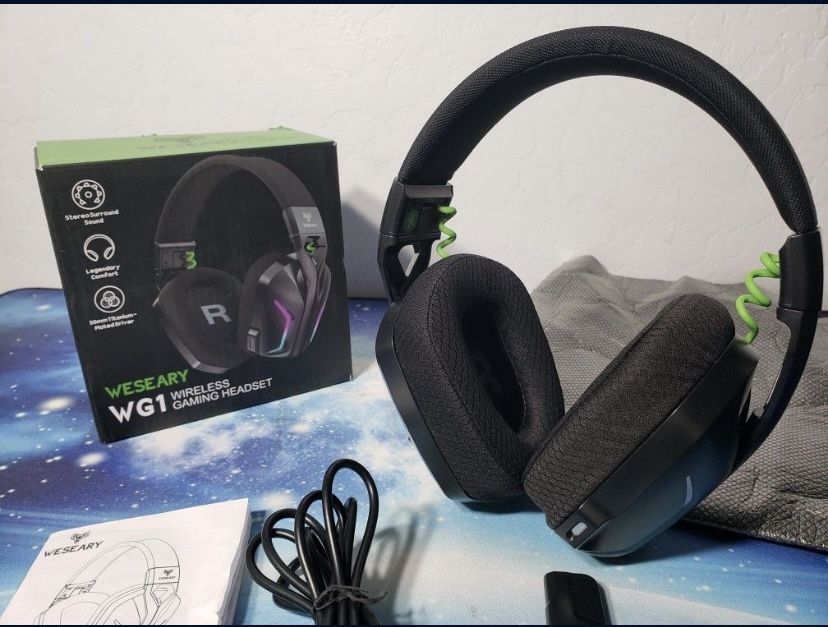 Hablo Español Brand new, opened box. Comes with everything shown in pictures New WESEARY 7.1 Wireless Gaming Headset W/ Microphone for PS4, PS5, PC, Switch, Mac, 2.4GHz Bluetooth Gaming Headphones W/ Crystal-Clear Mic, 50Hr Battery, Cool RGB 🏆【Master the Realm of Sound】Enter a new realm of auditory excellence with the WESEARY wireless gaming headset. 50mm titanium-plated driver reproduces deep bass and clear highs, emphasizing every detail — from teammates' voices, footsteps, to gunshots. With the 7.1 professional mode, immerse yourself in cinematic 3D stereo surround sound. Elevate your sound experience today. 🎄🎄 this hot headset is an excellent gift for Christmas and birthdays, for boys, girls, family, and friends.🎁🎁 🚀【Ultra-Low Latency 2.4G Gaming】Discover gaming anew with our wireless PS5 headset. Supports ultra-low latency audio on PS5 with a 2.4GHz USB dongle (Delay≤20ms). From subtle details to game-changing shots, the wireless PC headset's 2.4G lossless wireless tech captures every sound, immersing you fully. Embrace wireless freedom and precision. ⚠️ All modes are NOT compatible with XBOX. and The microphone is not available when connected to the SWITCH 🔄【Unmatched Versatility】Enhance your gaming experience with our Bluetooth gaming headphones. Seamlessly transition to Bluetooth mode by pressing the mic button for 2 seconds, enabling you to answer calls and enjoy music easily. Powered by the latest Bluetooth 5.4 technology, our headset boasts ultra-low latency (<48ms), surpassing other gaming headsets in performance. Additionally, take advantage of the convenience of Type-C wired mode for 0 latency gaming. 🎮【Multi-platform Compatibility】The 2.4GHz mode of the gaming headphones wireless is compatible with PS5, PC, PS4, mac, using the USB dongle. The Bluetooth mode of the headphones gaming is compatible with mobile phones, tablets, iPads, and other smart devices (Note: Bluetooth mode is not compatible with the PS4, PS5). The Type-C cable mode of this PC gaming headset is suitable for use with PS4, PS5, PC, Mac. 🎧【Ergonomic Excellence】Immerse in ultimate comfort using the wireless headset for Switch. The adjustable headbands alleviate pressure, accommodating all ages. Legendary breathable earmuffs ensure uninterrupted gaming by isolating noise. Crafted for mobile gaming pros, they remain sweat-free and convenient. When the cool RGB lighting effect is enabled, it adds a stylish touch to your gaming experience. 🎵【Voice Precision Redefined】Elevate your voice with our dual beamforming microphones. Free from mic arm constraints. Experience unparalleled clarity through our exclusive noise-canceling technology. Your teammates will hear you clearly, ensuring strategic communication and precise sound localization. 🔋 【Exceptional Battery Life】This pc gaming headset feature a 1200mAh battery, Whether you're immersed in music or engaged in extended gaming sessions, this headset keeps up all day. Game worry-free for hours, with a low battery alert for timely recharging. Rapid 2.5-3 hour USB-C charging extends to 30-35 hours with RGB lighting, or an impressive 50 hours without RGB Original price: $49.99 plus tax Our price: $25 no tax First come first served please Located on N John Wayne Pkwy and Cobblestone Farm Dr, Maricopa AZ, 85139 Check out more brand new discounted items in my offers
