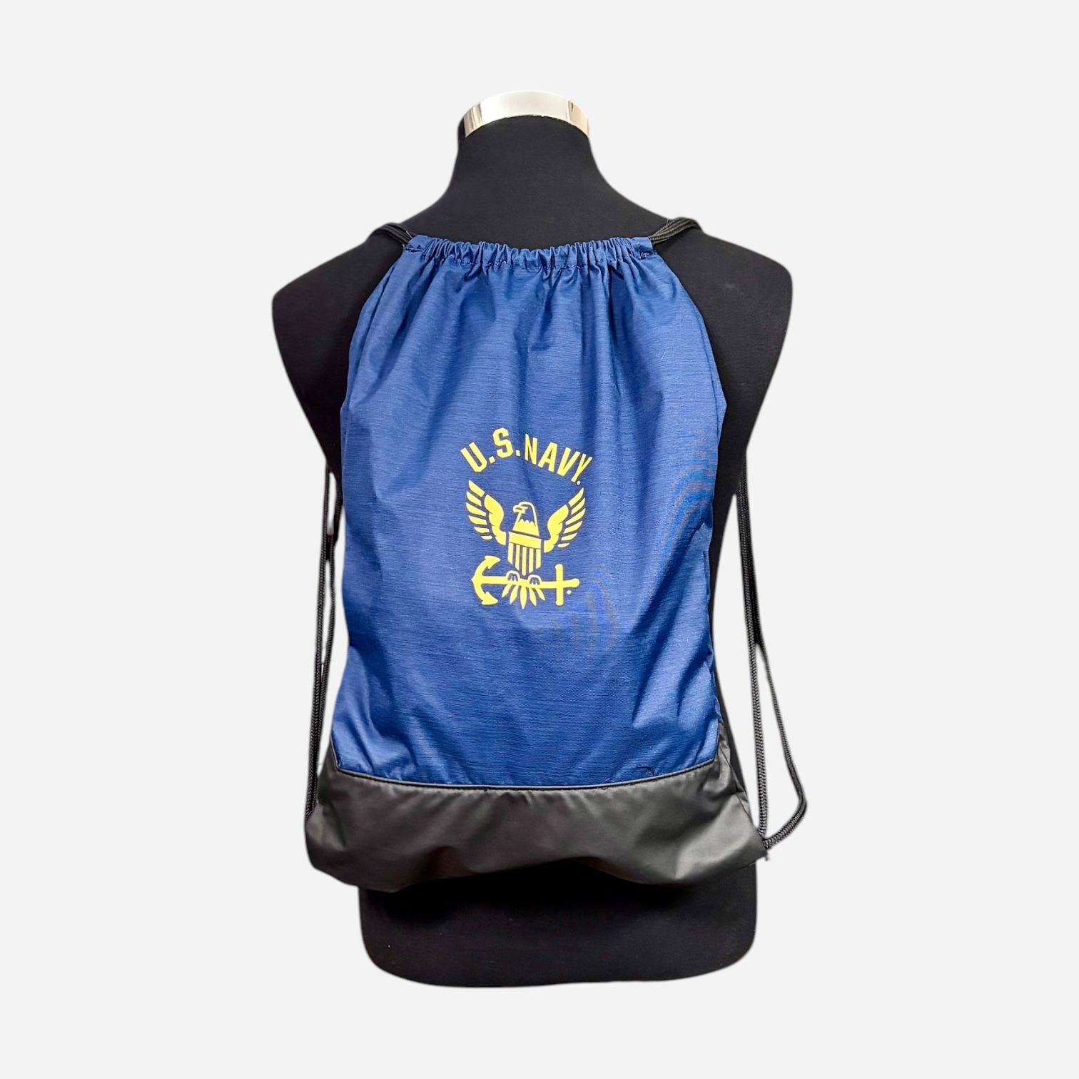 Nike U.S. Navy Logo Blue Black Drawstring Brasilia Gym-pack - In good, clean, odor free, smoke free condition. - Our best-selling gymsack silhouette renewed. Internal dual pockets for organization, exterior zippered pocket for additional storage, and mesh ventilation.Screen printed Swoosh and Navy graphic on front and back sides. - 100% Polyester (20% Recycled) Size:20”H x 14”W x 2”D.