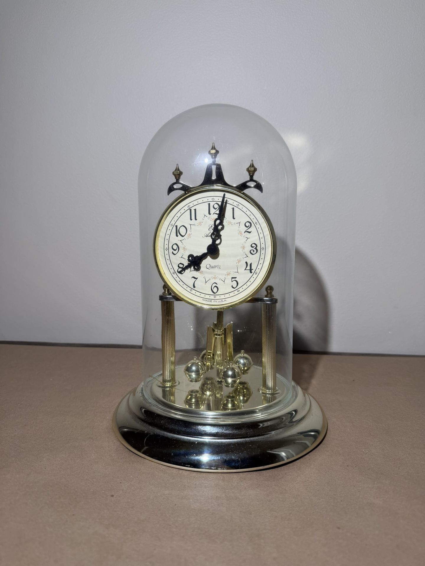 Vintage Style Mantel Clock Under Glass Dome – Quartz Movement