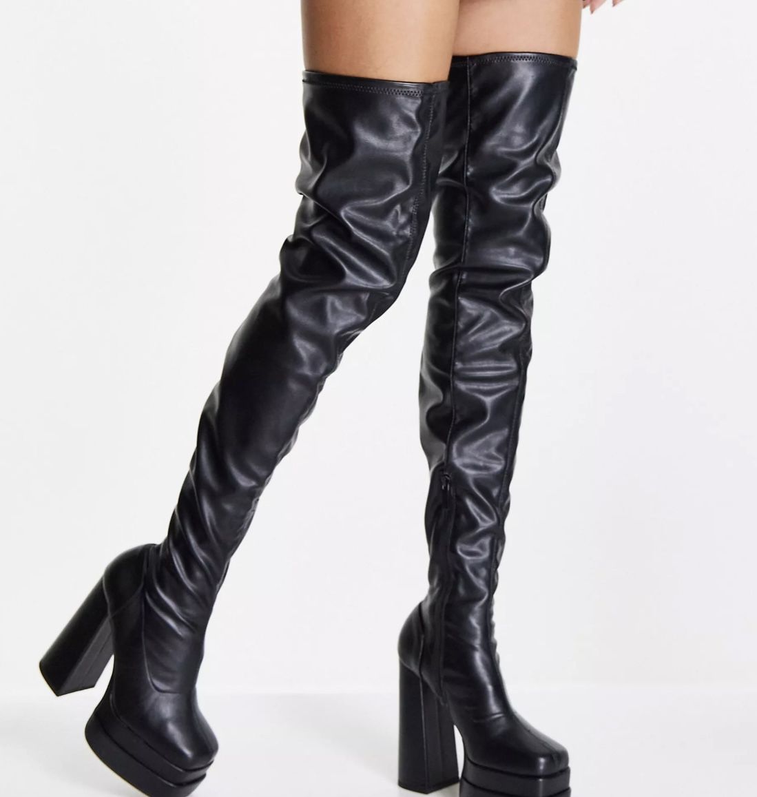 Thigh High Chunky Heel Boots