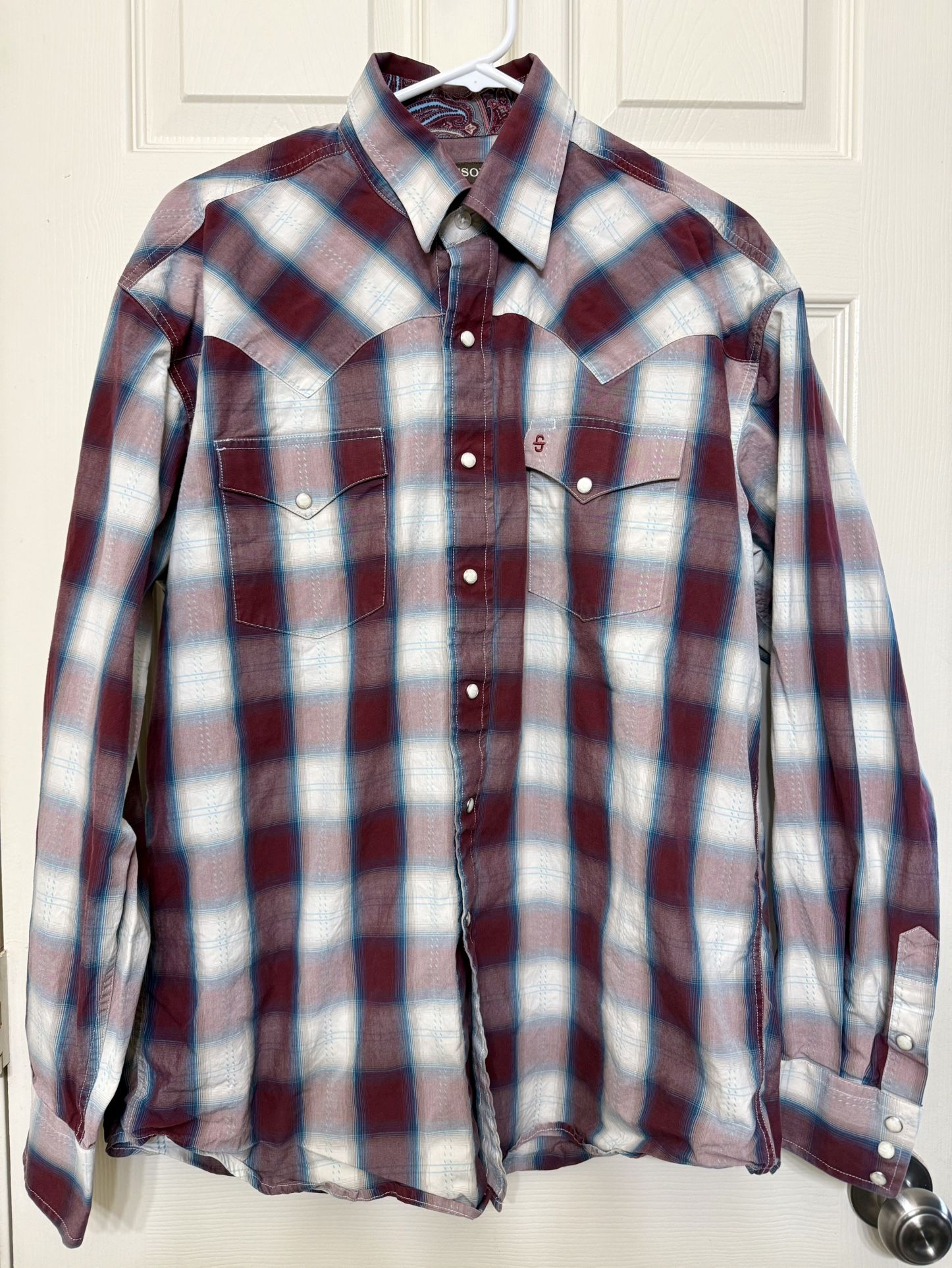 Great condition, variety of men’s western long sleeve shirts, all are size large. These are from a smoke free home. Prices vary. $30 - Stetson wine plaid shirt $20 - Ely Cattleman $20 - Moon Shine Spirits Pick up at 96th St. & Shea Blvd. X posted, no holds, cash only.