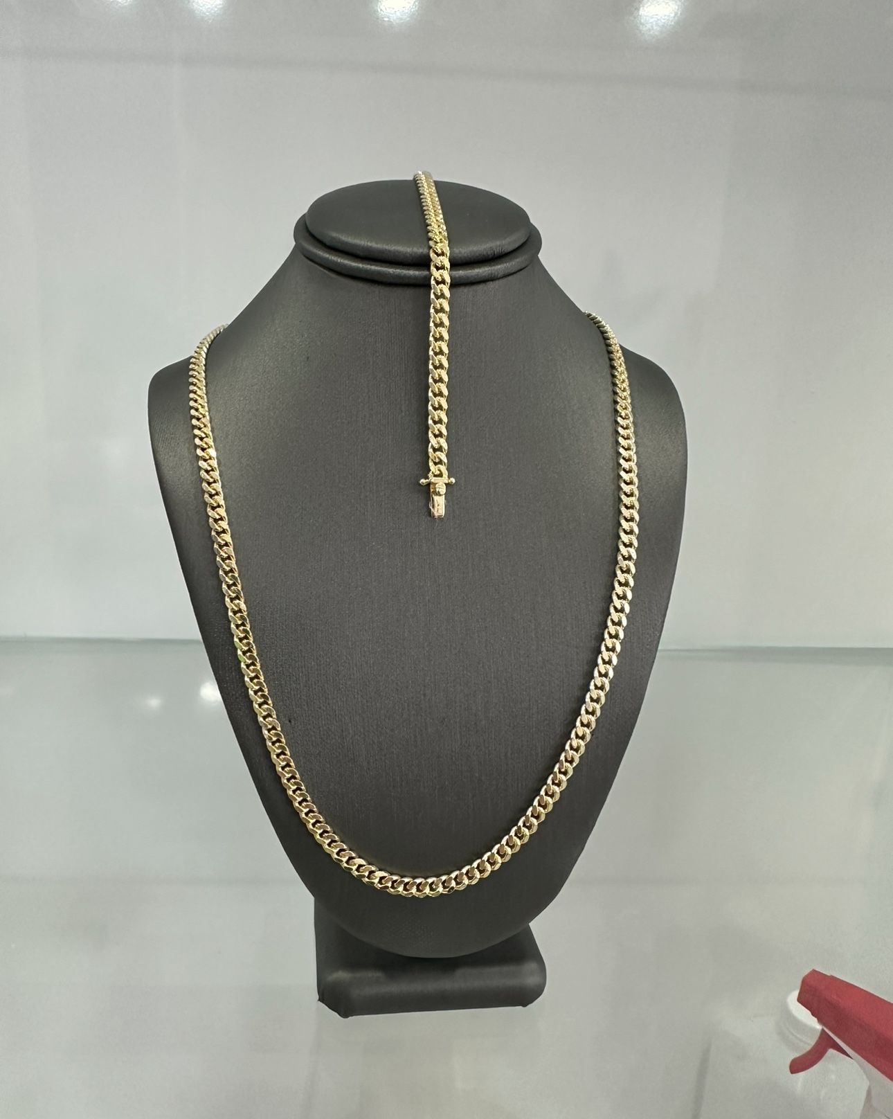 Combo Cadena y Manilla Cubana hechas con Plata Fina 99.9 y Baño de oro real 14k. Cadena 4mm 24” Manilla 4mm 8”