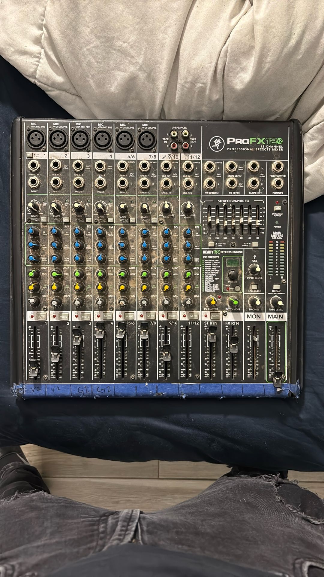 been sitting in closet for a while so it’s dusty but works fine. good for gigs. missing one knob for MON but still works