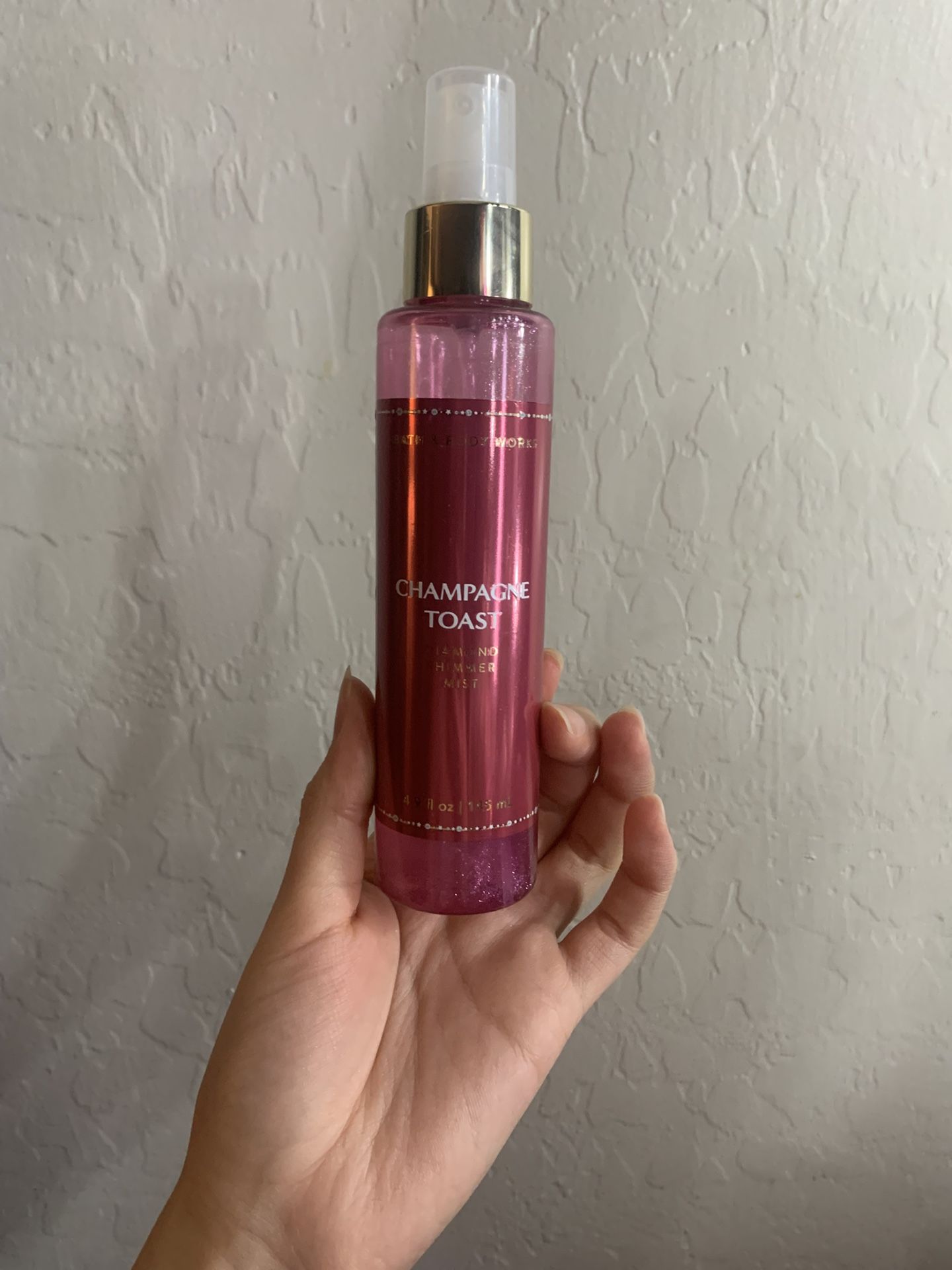 Smells really good The glitter is pink and purple really shimmery if you’re interested, let me know