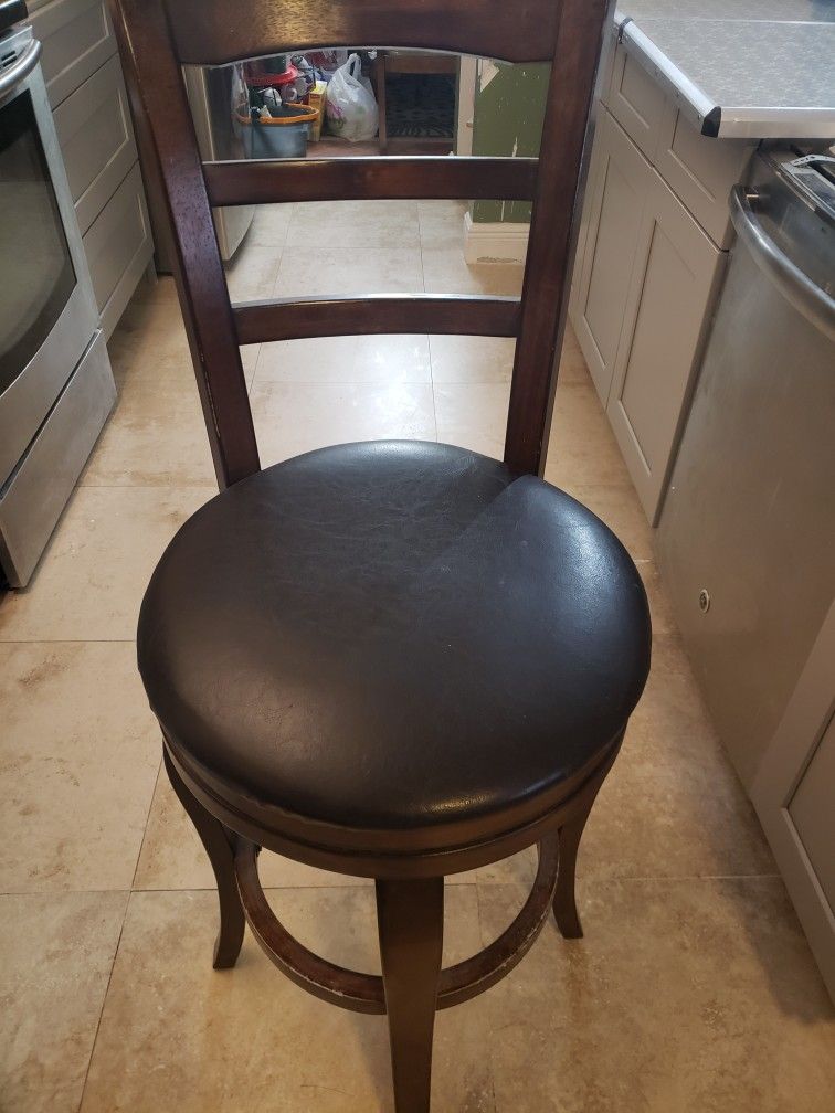 2 bar stools , seat height 27 inches , chair height 43 inches. Dark wood in great condition. Priced for fast sale.