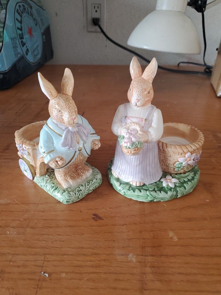 Pair Of Avon Vintage Springtime Rabbits