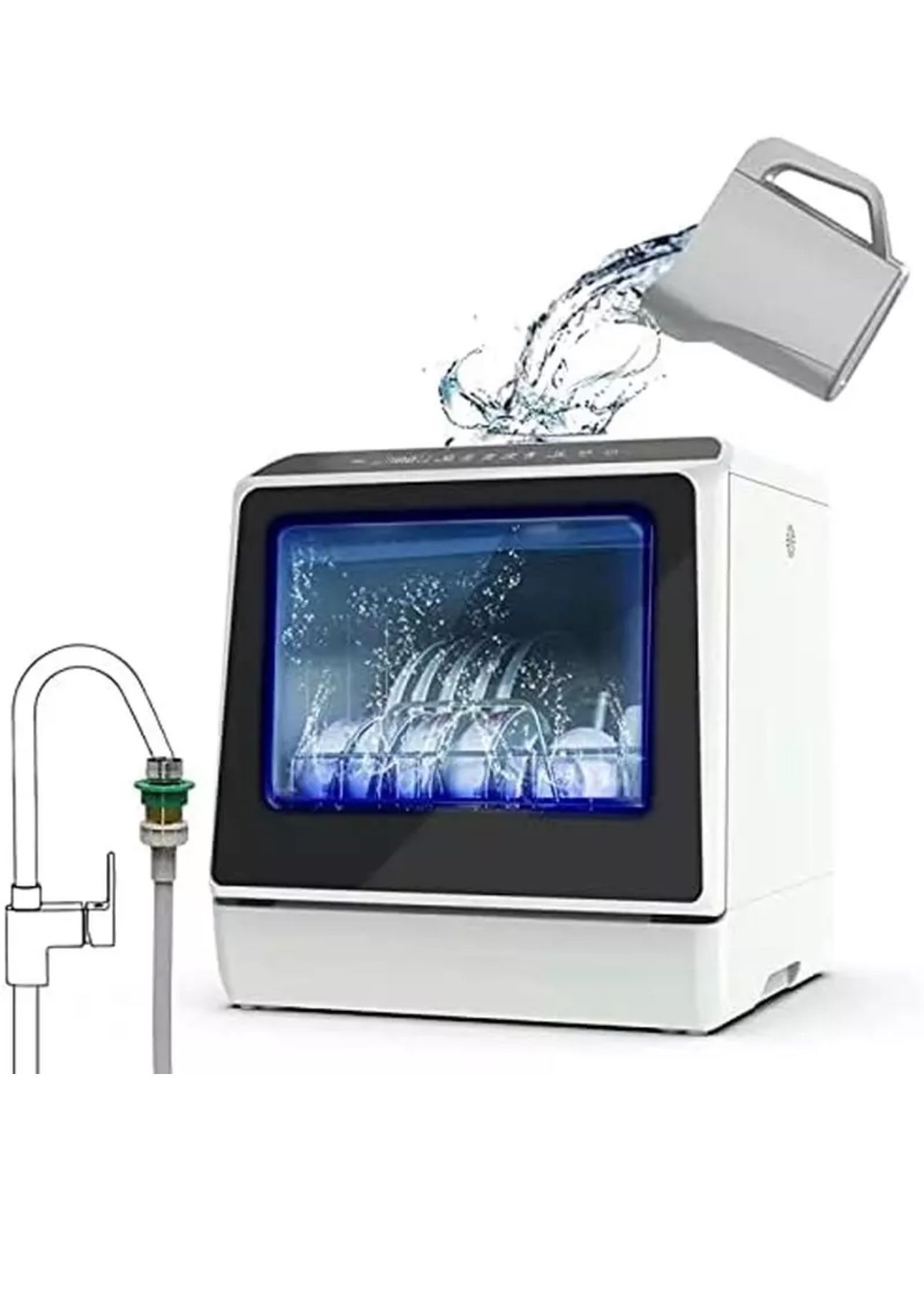 Dishwasher with 5 Programs, 3-Cup Water Tank, Fruit/Veg Basket, High Temp,...