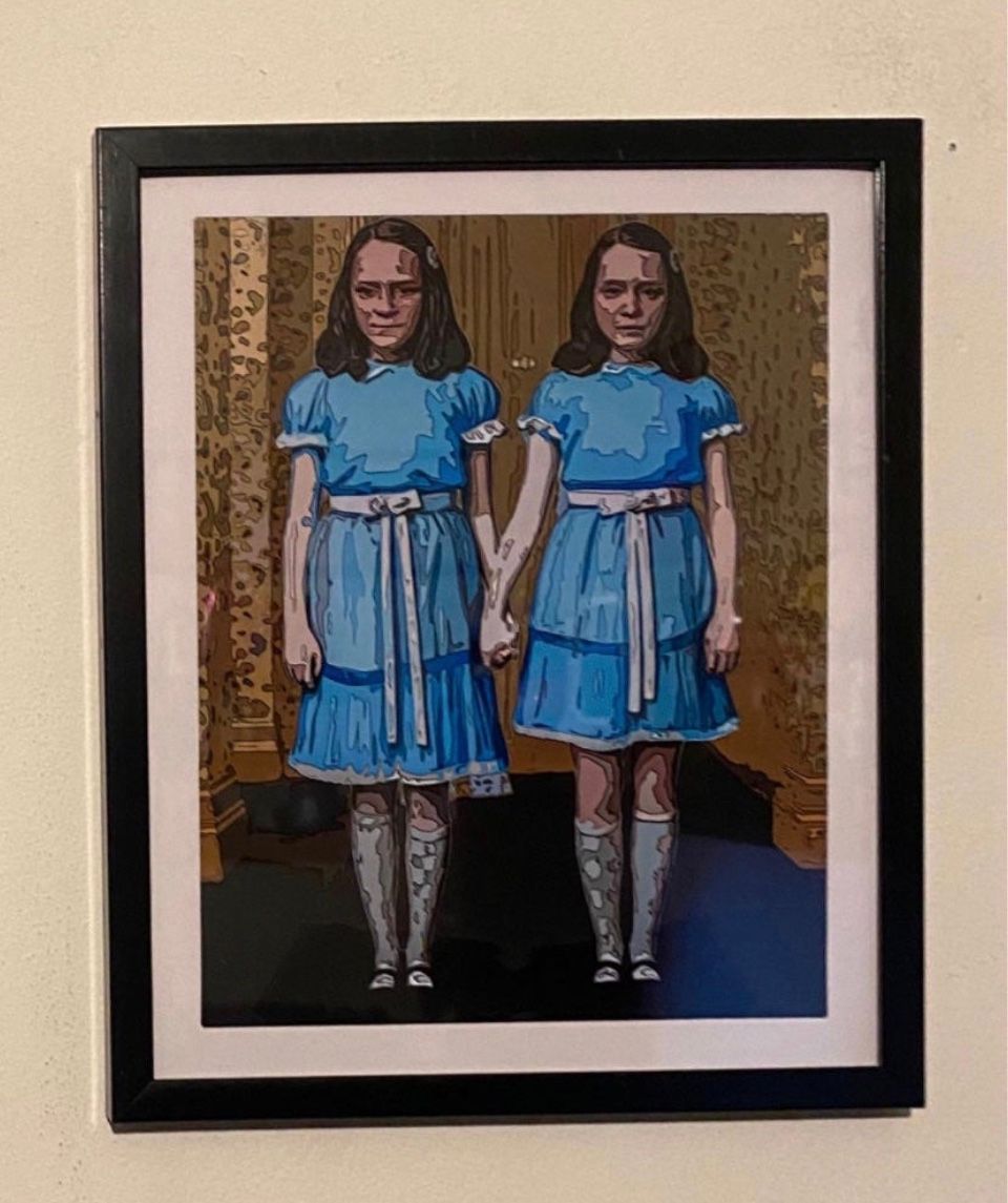 Twins from the classic horror movie the shining art piece on black frame