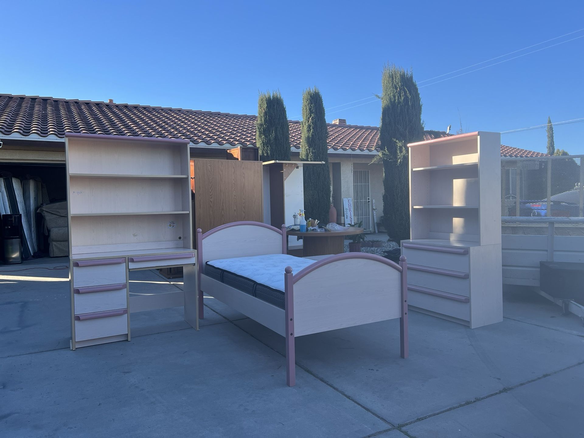 Furniture4you, girls bedroom set, twin bed, twin mattress, desk w/ hutch, nightstand, dresser w/ shelves, Good condition Can deliver for extra charge Delivery is drop off only