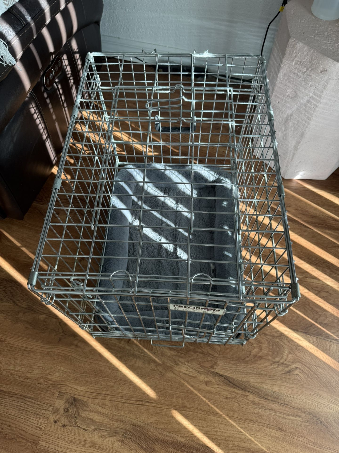 See pictures Pick up parkland, Fl 33076 Metal dog crate with bed Approx 24 in length Approx 17 in width Approx 17.5 in height