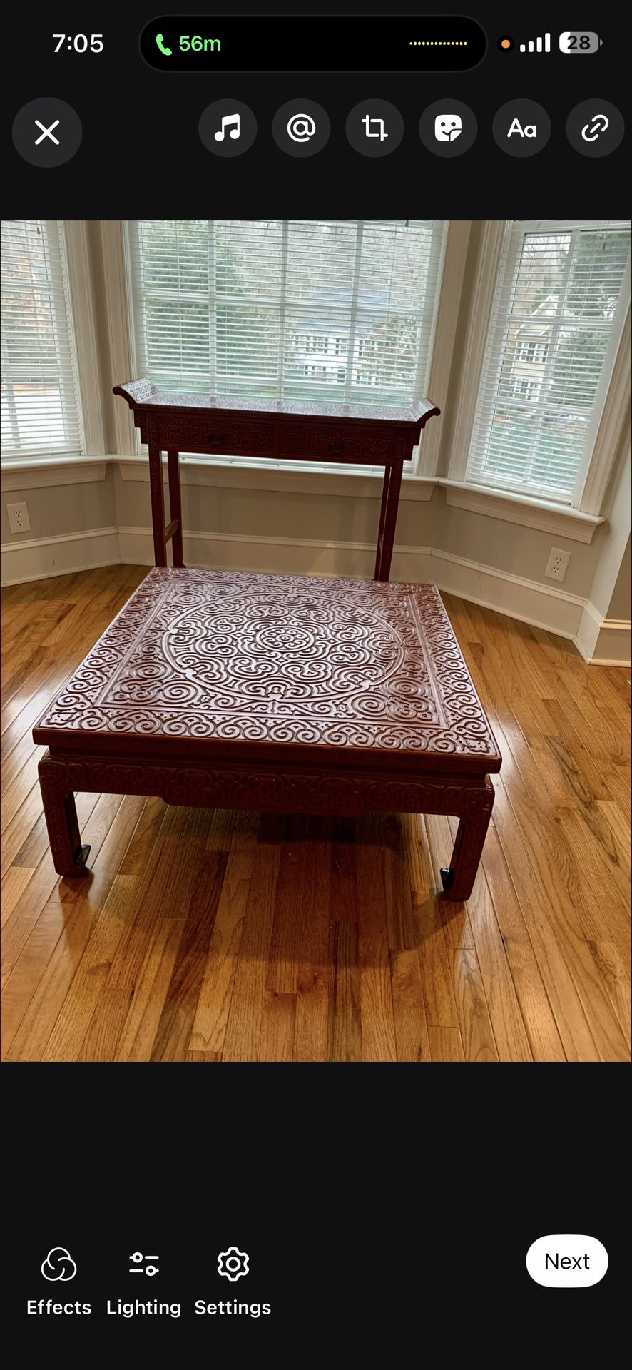 Stunning rosewood carved opium table and console. Been in the family for decades and selling due to a move. Aware these prices can vary hence why it is set at its price. Negotiable to an extent. Thank you.